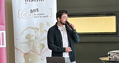 Gabriel Chemin, diplômé d’un master en Immunologie Intégrative et Systémique de Sorbonne Université et actuellement en 4ème année de doctorat au Centre de Recherche en Cancérologie de Lyon (CRCL), a exposé ses travaux de thèse.